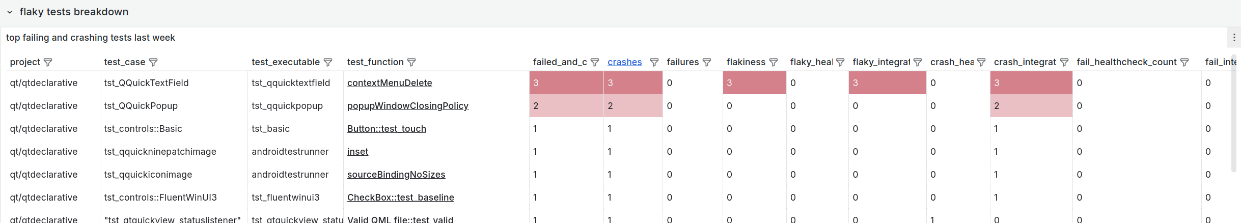 As evidenced by the proceedings of https://codereview.qt-project.org/c/qt/qtdeclarative/+/648708 it's currently impossible to notice tests that crash unless they crash twice in a row or someone happens to look at the logs in great detail. That's horrible! A crashing test is worse than a failing test. It needs to be highlighted in bright red and the CI should repeatedly poke the maintainer in whatever way possible to fix it.