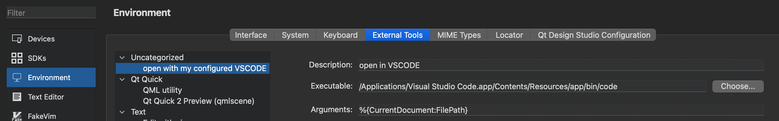 Enable quick launching of an external editor from the context menu.