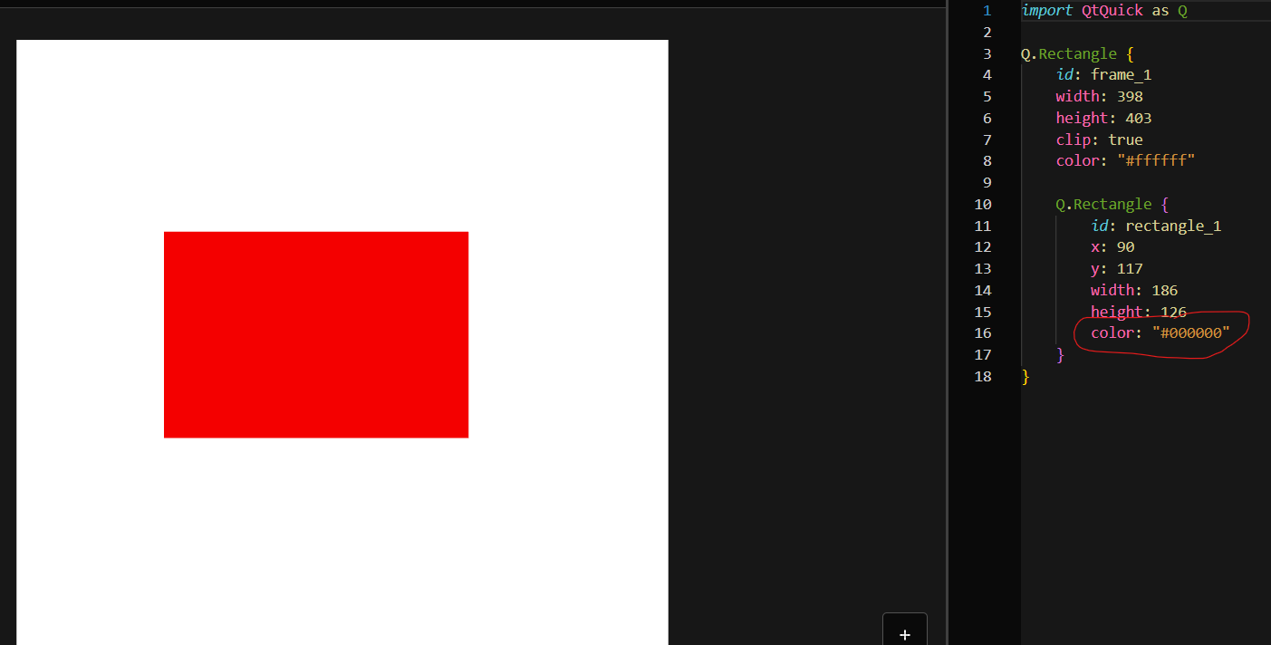 5. Change the black rectangle color to red “#FF0000#
