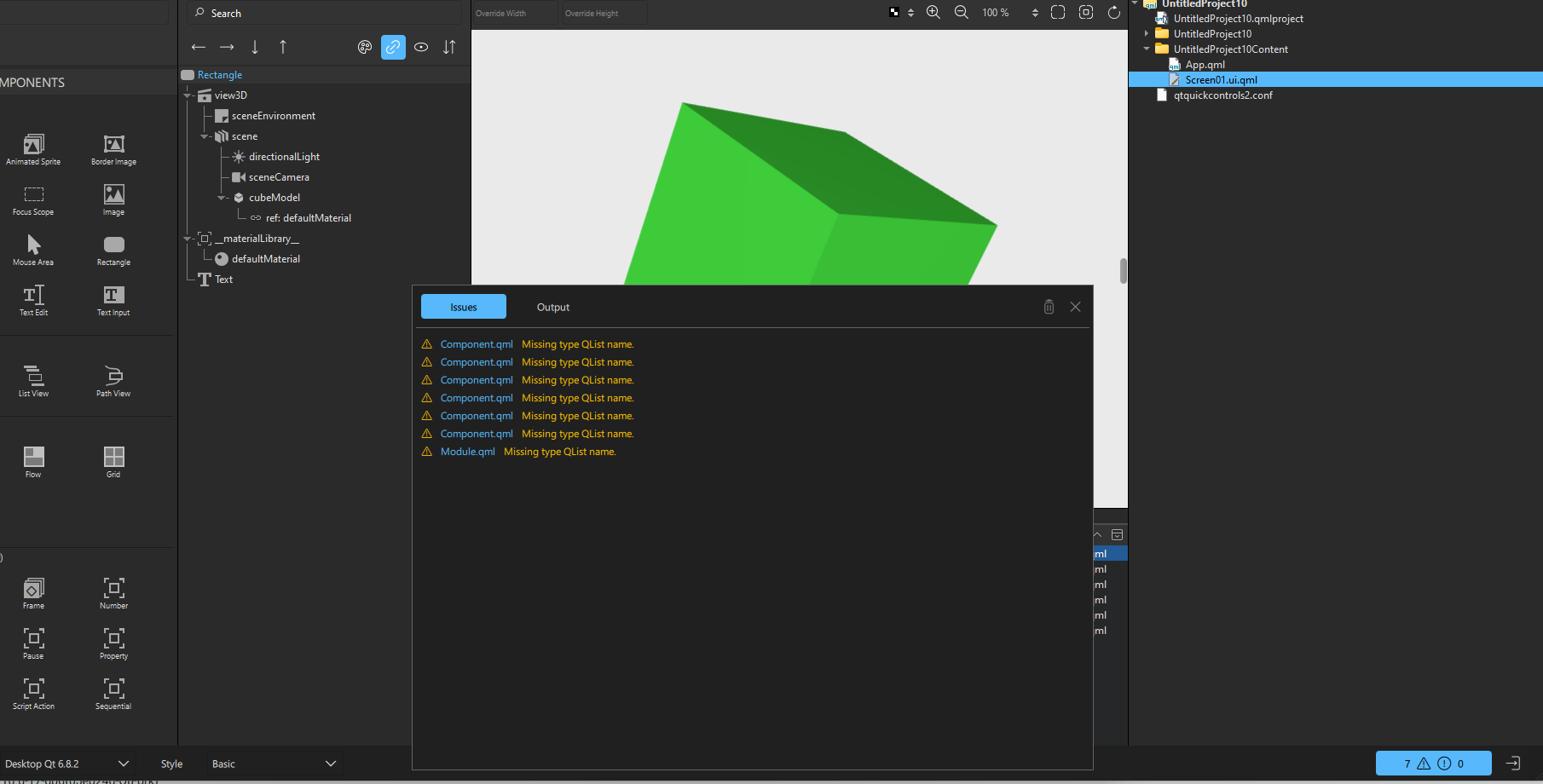- -> Warnings "Missing type QList<string> name" and "Missing type QList<int> name" seen for Component.qml and Module.qml