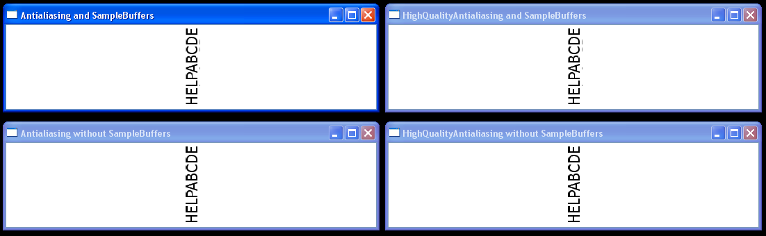 Text rendering artefacts appear with the OpenGL rendering system, when Antialiasing flag is on, with some font sizes, and with some transforms.