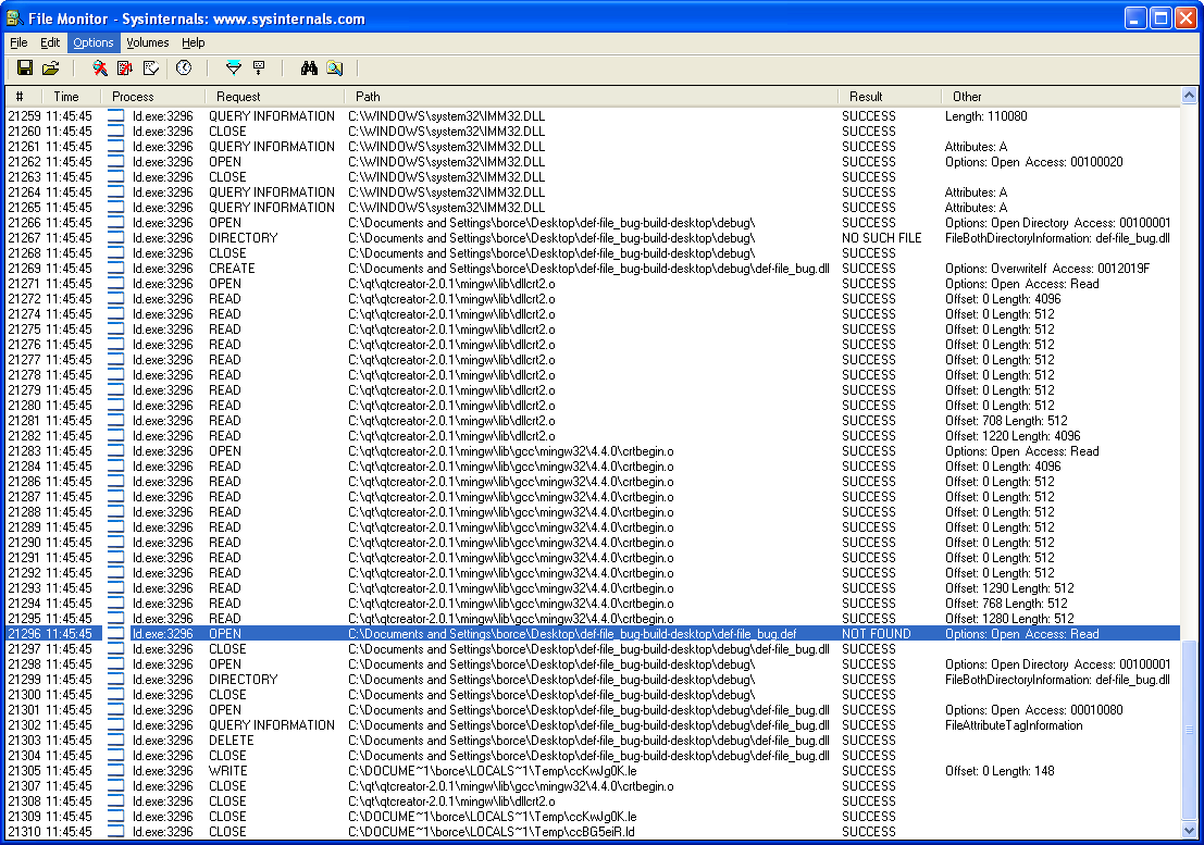 c:/qt/qtcreator-1.3.83/mingw/bin/../lib/gcc/mingw32/4.4.0/../../../../mingw32/bin/ld.exe: def-file_bug.def: No such file: No such file or directory