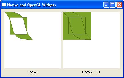 Drawing a path to a QGLFramebufferObject does not produce the same results as when drawn to a QWidget (or directly to a QGLWidget). The example code below was put together from Qt documentation and examples.
