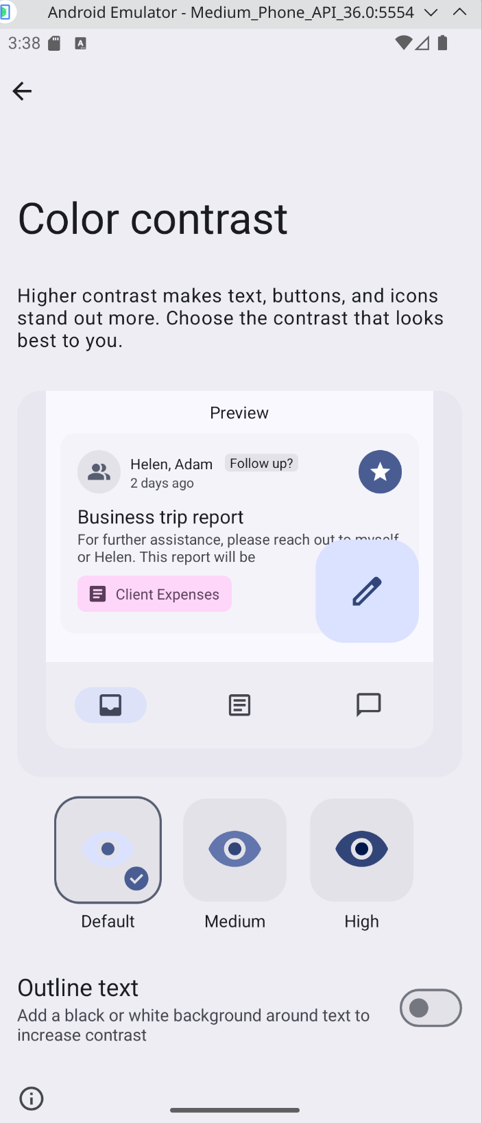 The new contrastPreference setting should take into consideration the "color contrast" setting used on Android platforms.