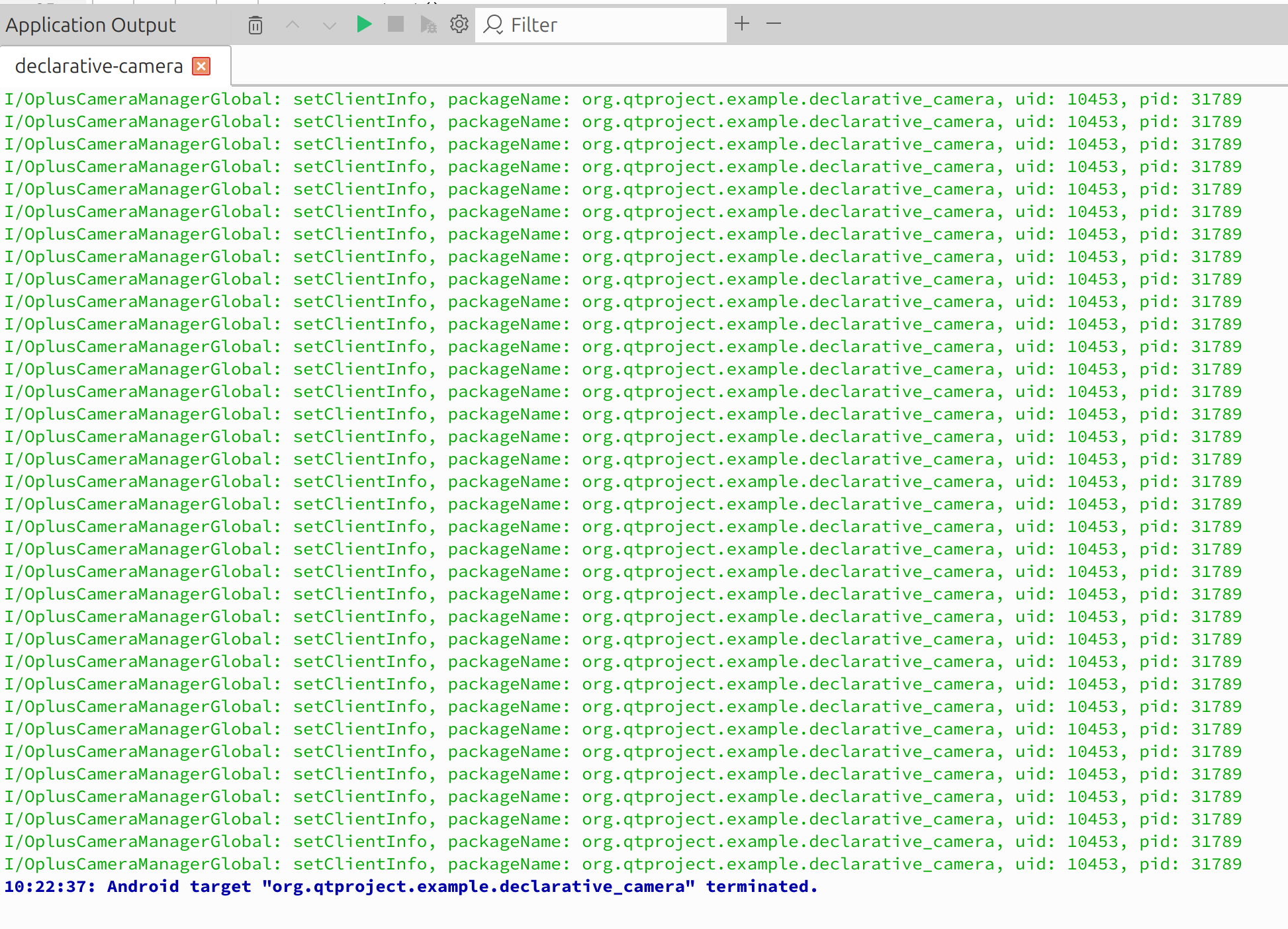 After taking a picture with front facing camera using the QML Camera Application example, the application does not let you take anymore pictures with any of the cameras anymore. Restarting the application works.