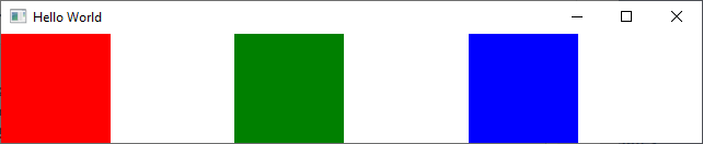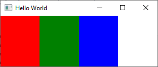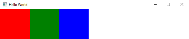 import QtQuick import QtQuick.Controls import QtQuick.LayoutsWindow { width: 310 height: 100 visible: true title: qsTr("Hello World") component R : Rectangle { Layout.fillWidth: true Layout.maximumWidth: 100 Layout.fillHeight: true Layout.alignment: Qt.AlignLeft } RowLayout { width: parent.width height: 100 spacing: 0 R { color: "red" } R { color: "green" } R { color: "blue" } Item { Layout.fillWidth: true Layout.minimumWidth: 1 Layout.preferredWidth: 1 } } }