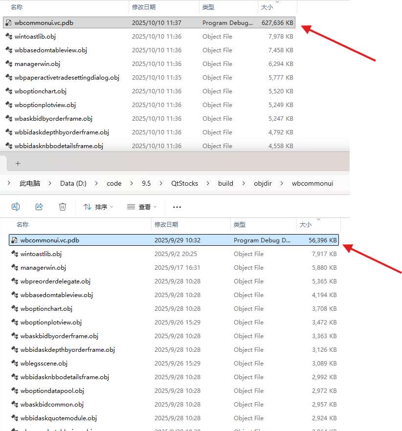 3. Qt5 compiles and generates libraries of several tens of MB for pdb, while Qt6 produces 1-2 GB of pdb.