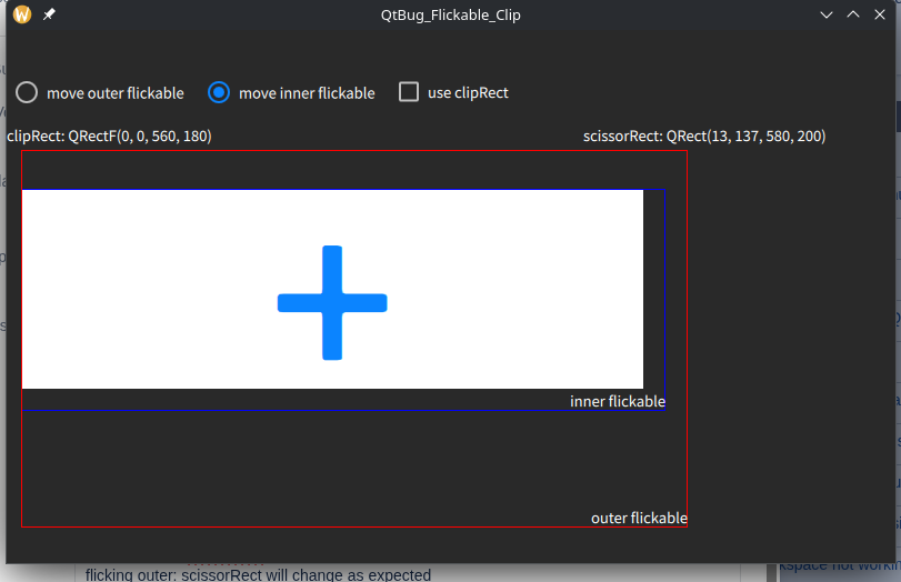 flicking outer: scissorRect will change, but the value is not same as expected, it looks like is the intersect of two flickable rect in the whole window.