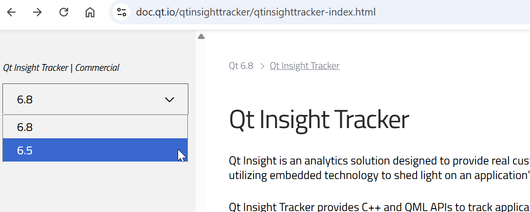 Qt Insight Tracker docs missing for 6.9 and 6.10.