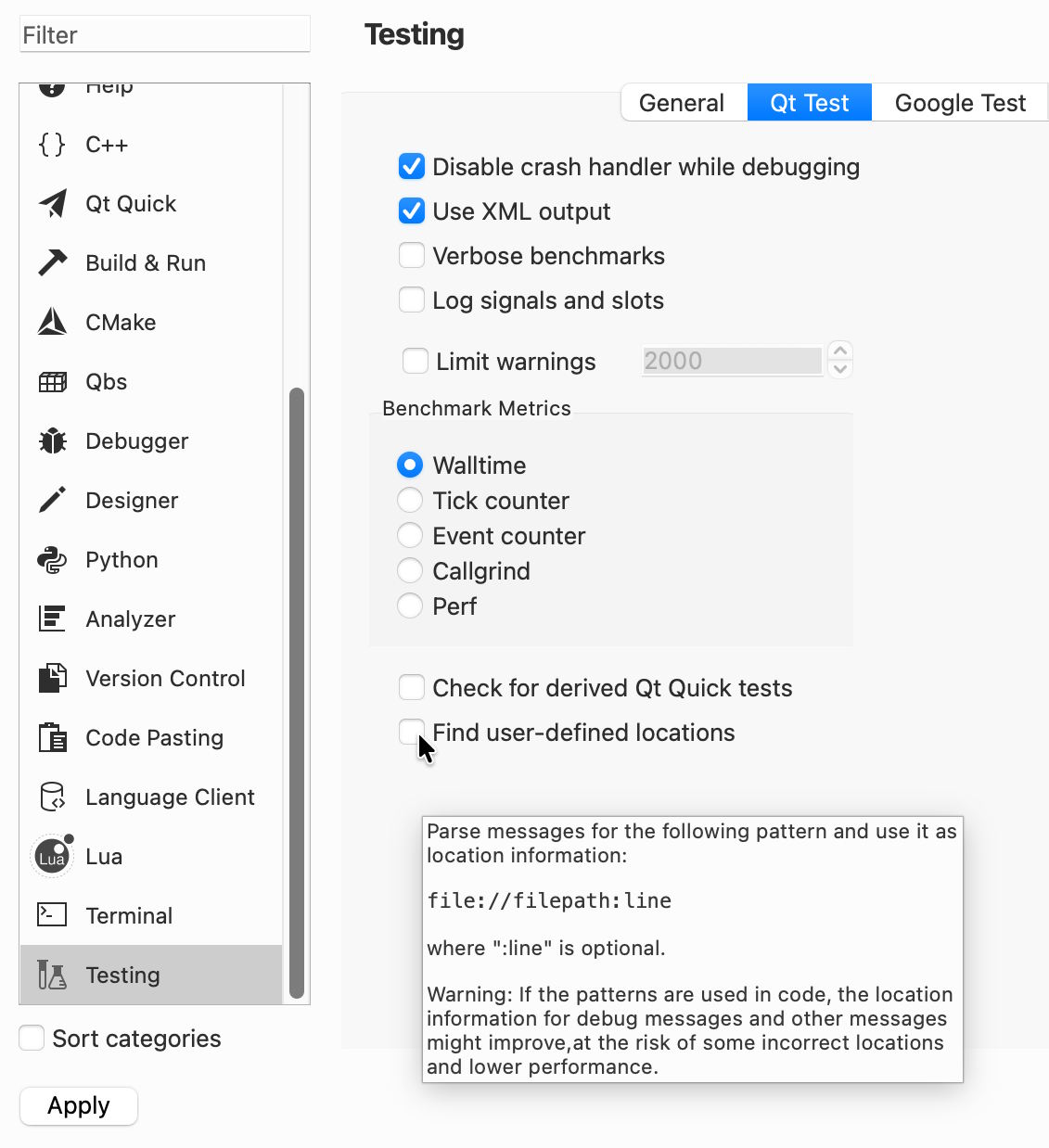 Pointing at the checkboxes in the preferences of QtCreator also shows the problem when running it on macOS Tahoe. This only seems to affect tooltips that have multi-line text. For example, open QtCreator / Preferences / Testing / Qt Test, and then point at the lowest checkbox "Find user-defined locations".