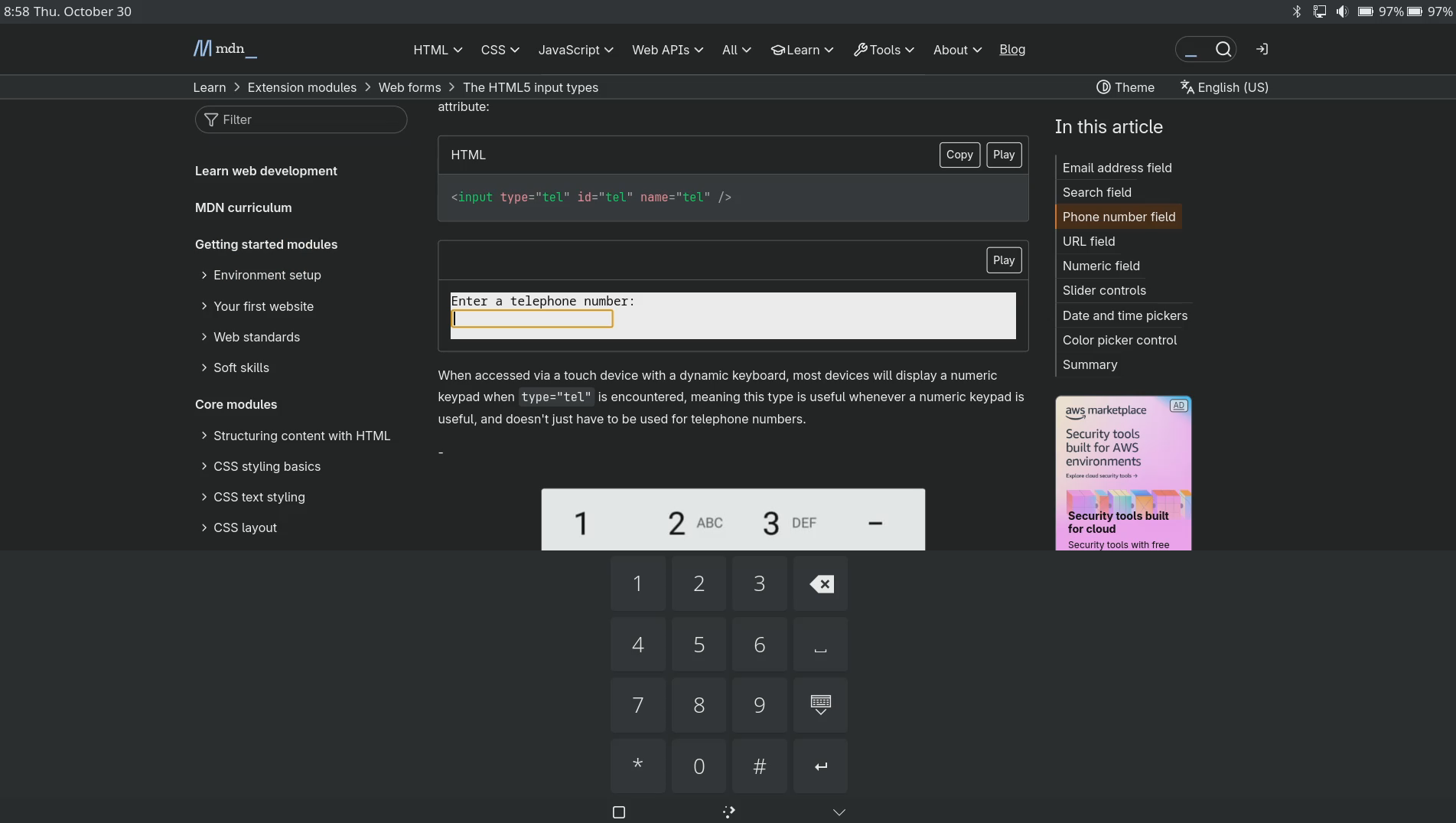When rendering HTML <input> elements, QtWebEngine currently does not respect the inputmode attribute, which is intended to control the on-screen keyboard layout on mobile and touch devices.