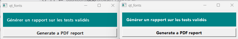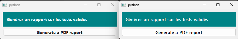 import sys from PySide6.QtWidgets import QApplication, QLabel, QMainWindow, QPushButton, QVBoxLayout, QWidget class SimpleWindow(QMainWindow): def __init__(self): super().__init__() self.setGeometry(100, 100, 400, 100) central_widget = QWidget() self.setCentralWidget(central_widget) main_layout = QVBoxLayout(central_widget) export_html_btn = QPushButton("Generate a PDF report") label = QLabel("Générer un rapport sur les tests validés") main_layout.addWidget(label) main_layout.addWidget(export_html_btn) if __name__ == "__main__": app = QApplication(sys.argv) stylesheet = """QPushButton { font-family: Segoe UI Variable; font-size: 14px; font-weight: 700; text-align: center; } QLabel { font-family: Segoe UI Variable; font-size: 14px; font-weight: 700; text-align: center; color: white; background-color: #098487; padding: 10px; } """ app.setStyleSheet(stylesheet) window = SimpleWindow() window.show() sys.exit(app.exec())