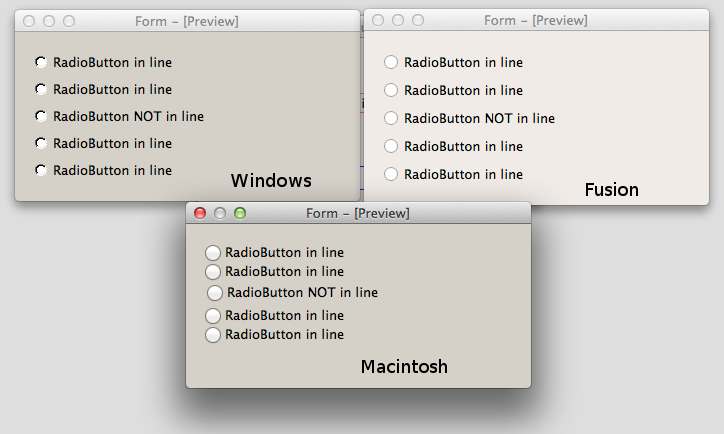 Just load the attached ui file in designer and start preview. The radios are not in the same alignment although it is a very simple setup.