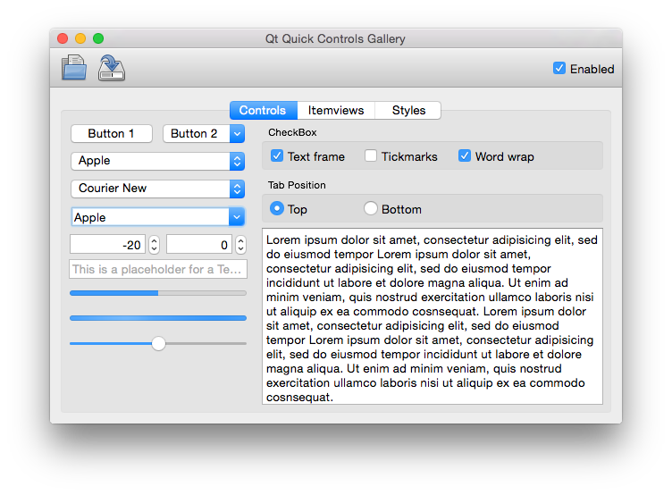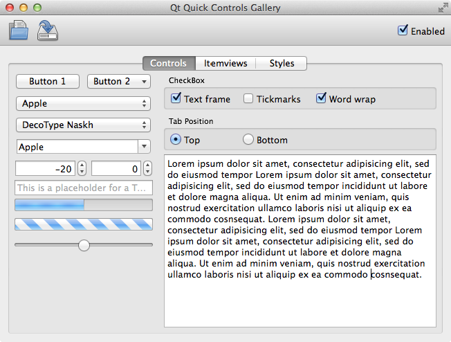 See attached screenshot. Some buttons are misaligned. The text in some of the controls feels misaligned too. And what is that with the letter t in the Itemviews tab title?