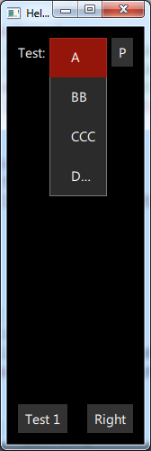 The ComboBox selection popup has the same size as the ComboBox control. When one of the selection entries ("DDDD" in the example") needs more space than the combobox size then the item is truncated. I think it would be more convenient to scale the selection dialog within the available space on the right side.
