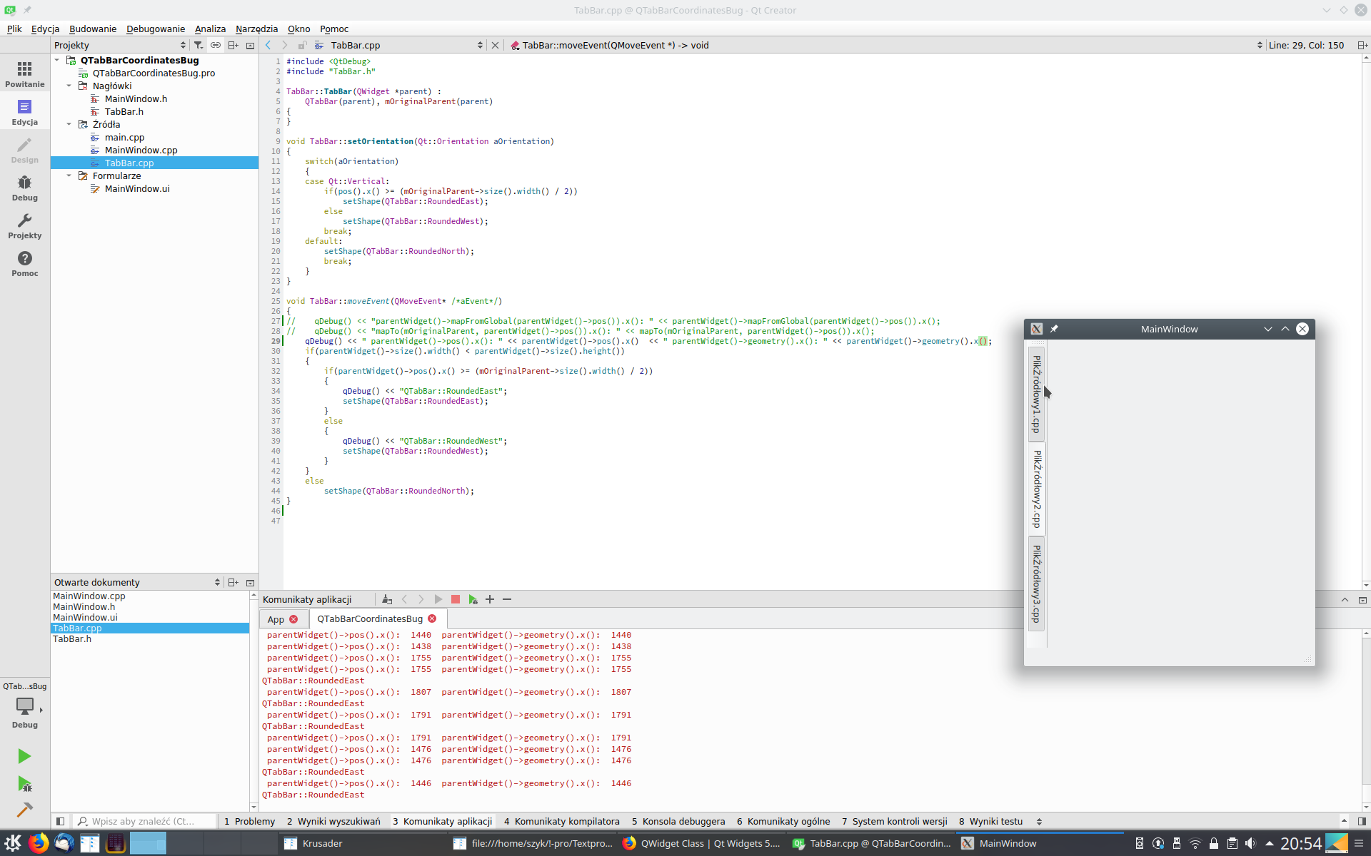 In order to do this I need to know x() tool bar coordinate relative to it's parent (main window). But I it seems that
