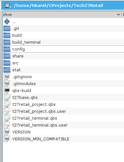 Open t27retail_project.qbs in the first instance of QtC and t27retail_terminal.qbs - in second instance. The t27retail_project.qbs project built to directory 'build', t27retail_terminal.qbs built to directory 'build_terminal'.