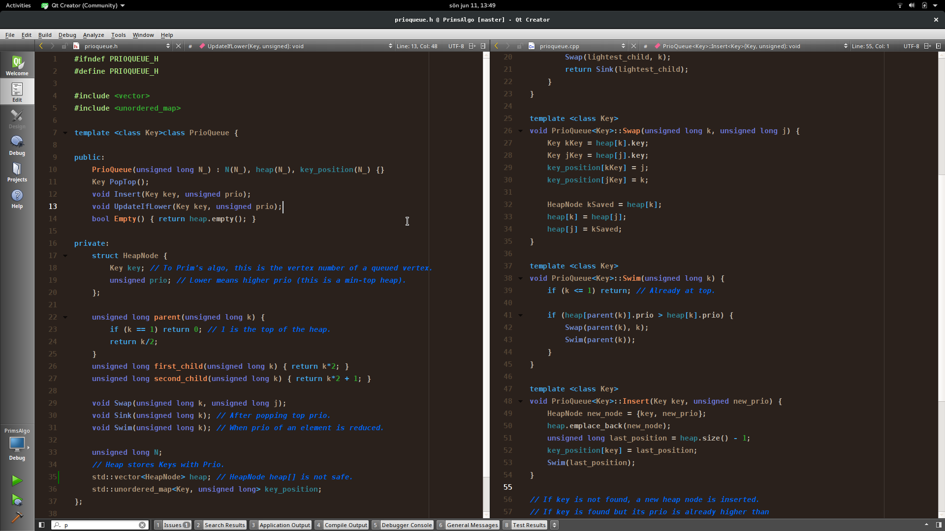 When scrolling through a .cpp file with many function bodies, this assistance from Qt Creator would help users to quickly see where each function body starts.