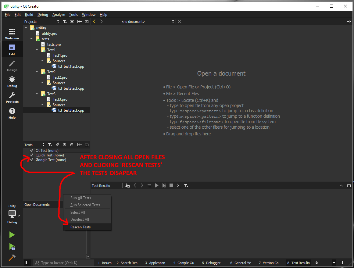 1. Download and unzip QtTest_rescan_tests_bug.zip