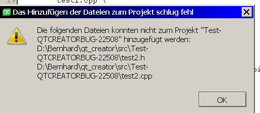 Under certain circumstances, adding existing files in Qt Creator may cause the following syntax error in the project file: