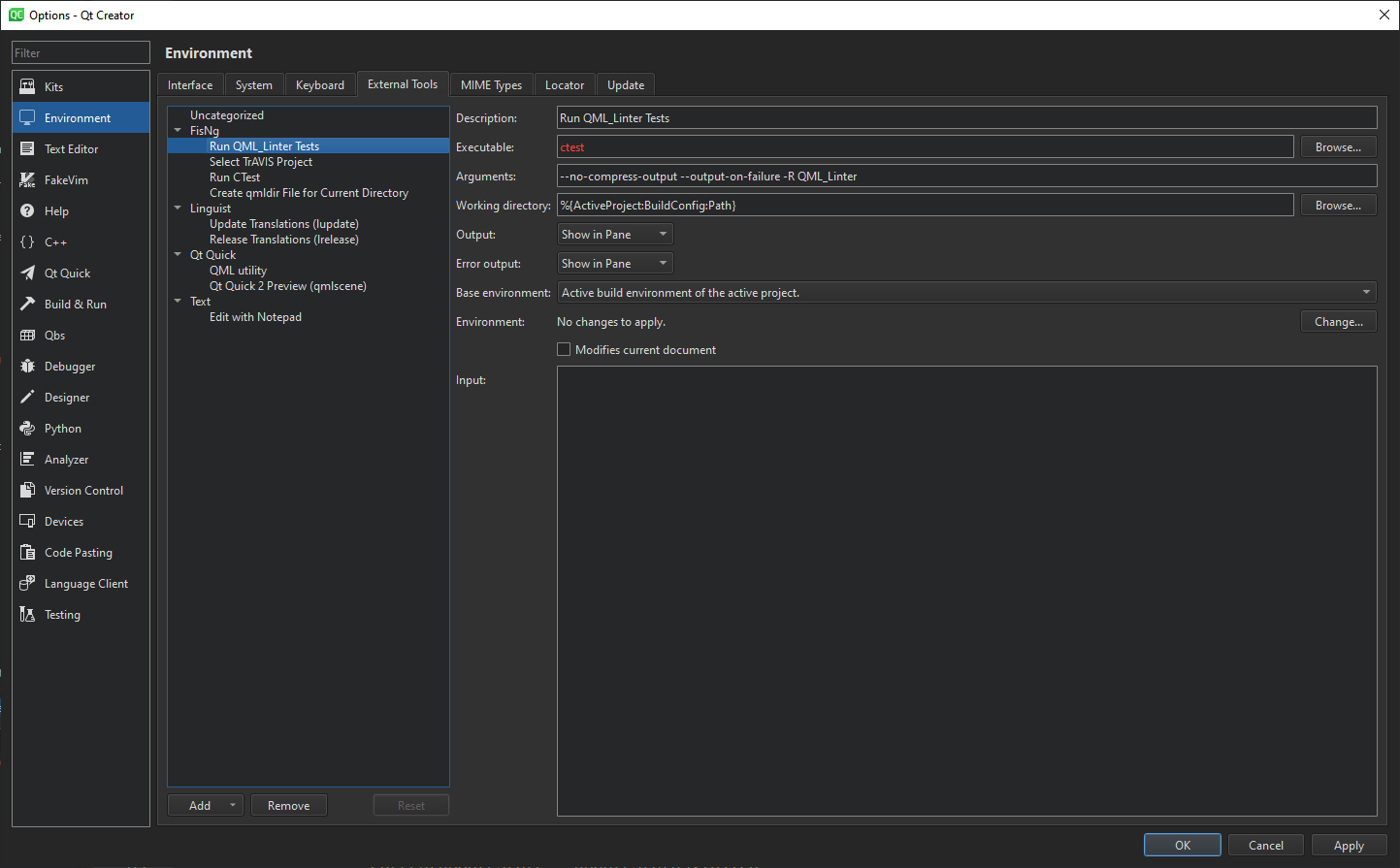 The general output pane misses some output of my ctest call. In the console for each failed test I get the output, what has failed.