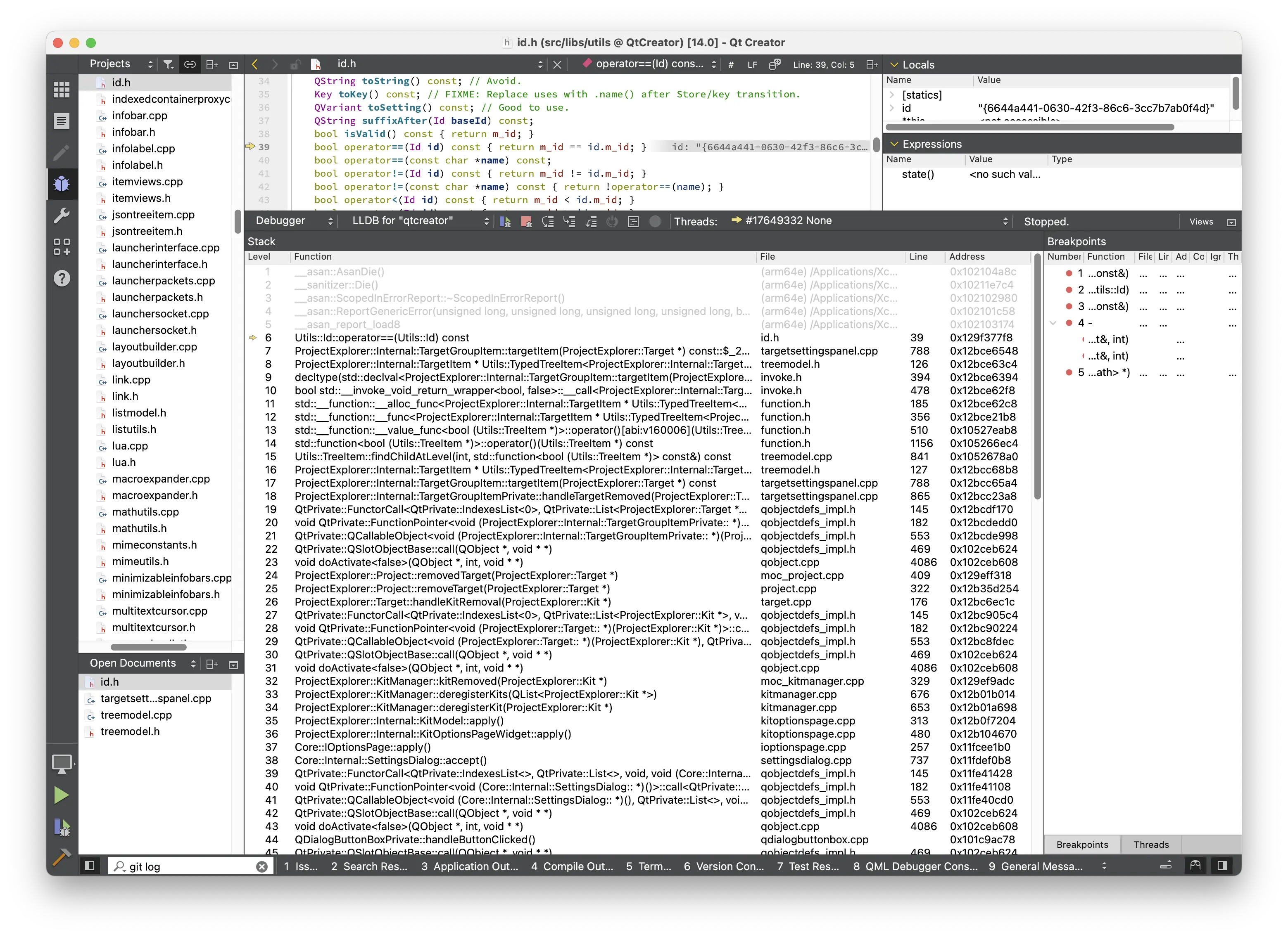 #0 0x12c7cdf8c in Utils::Id::operator==(Utils::Id) const id.h:39