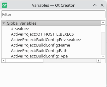 The Macro variables dialog has a filter field which appeared to filter for entries containing the entered substring. But with Qt Creator 18, that is not the case, anymore.