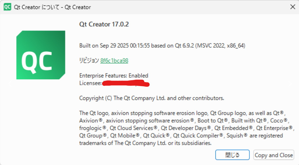 User from Japan informed that their Qt user and license details are not visible to them in QT Creators "About Qt Creator". We compared differences between English operating system language and Japanese and there are missing details in the Japanese one.