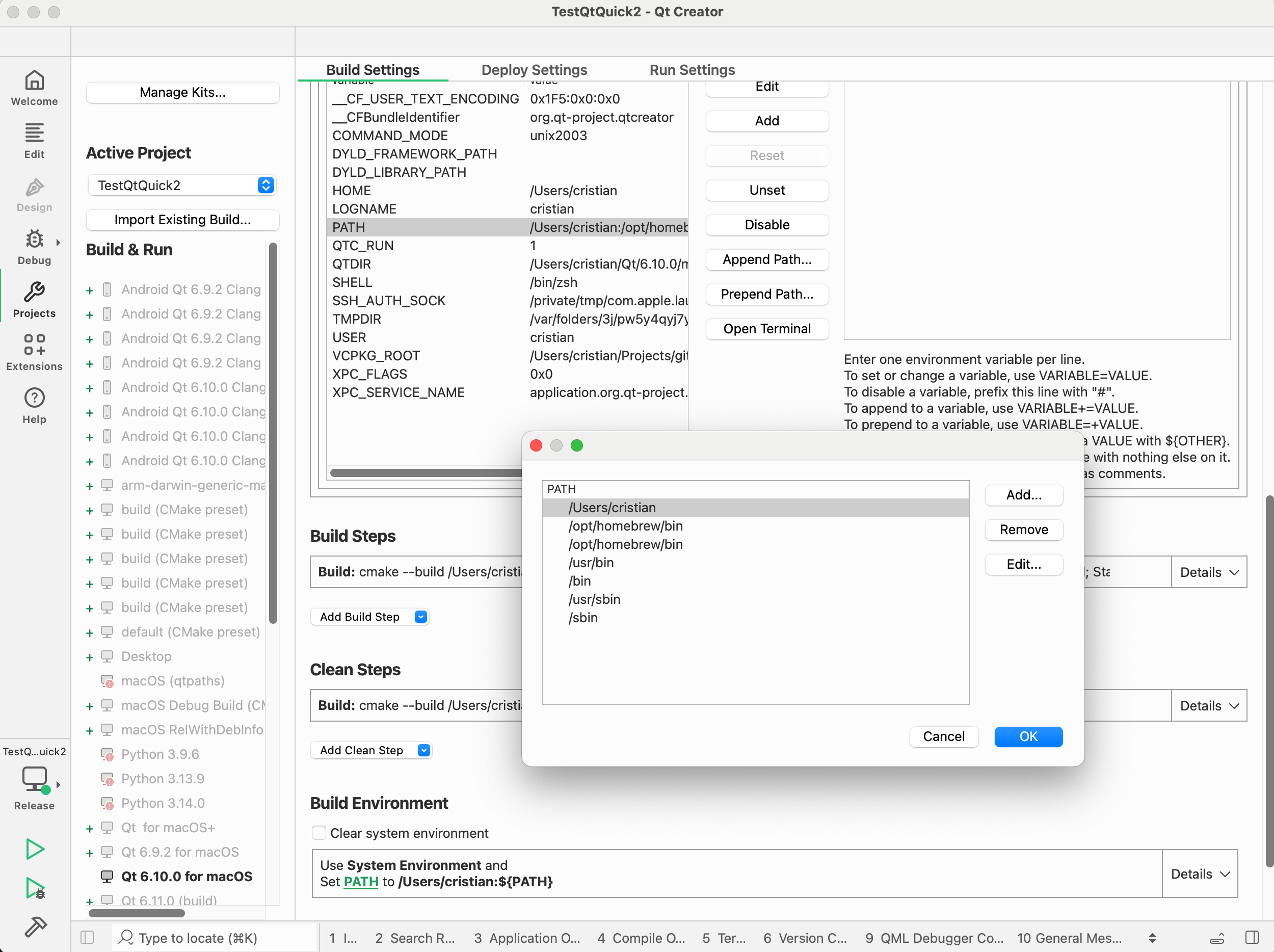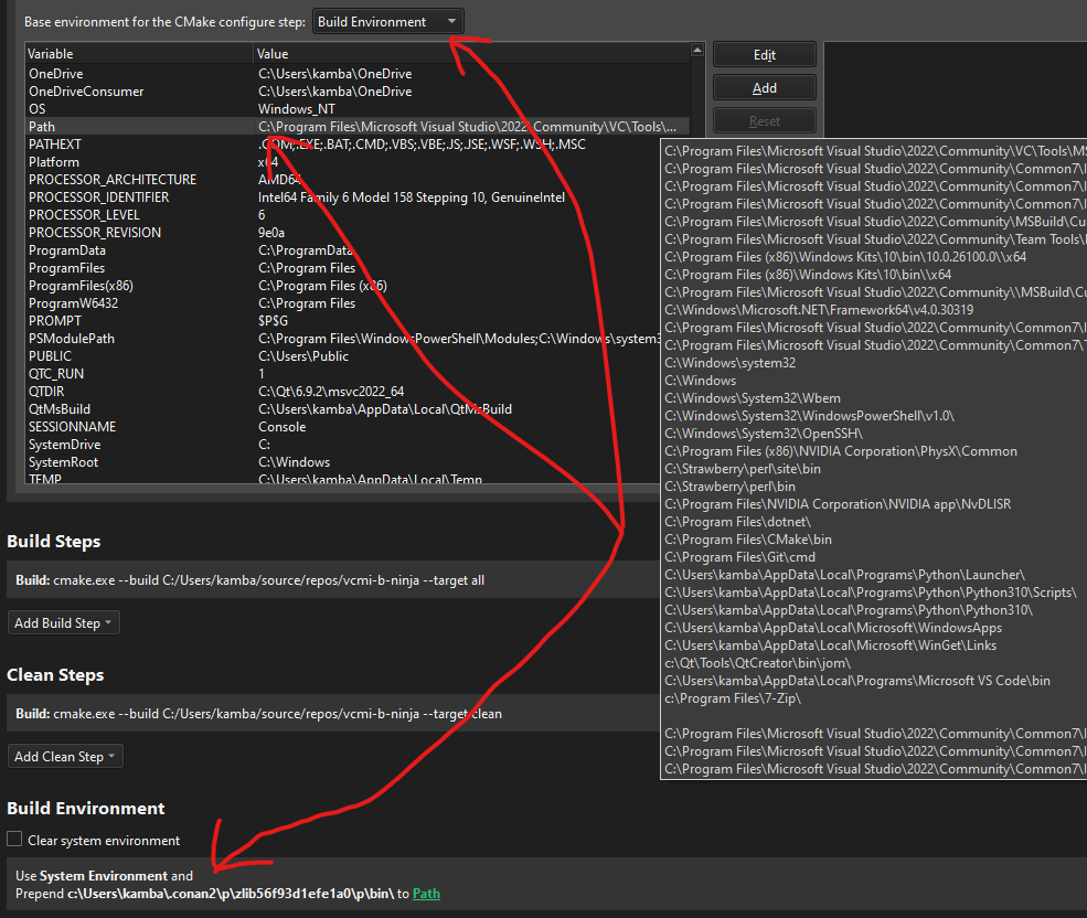 I have modified Build Environment and expect that CMake configure step will use it. However it doesn't happen, which is also visible in the UI, see the screeshot.