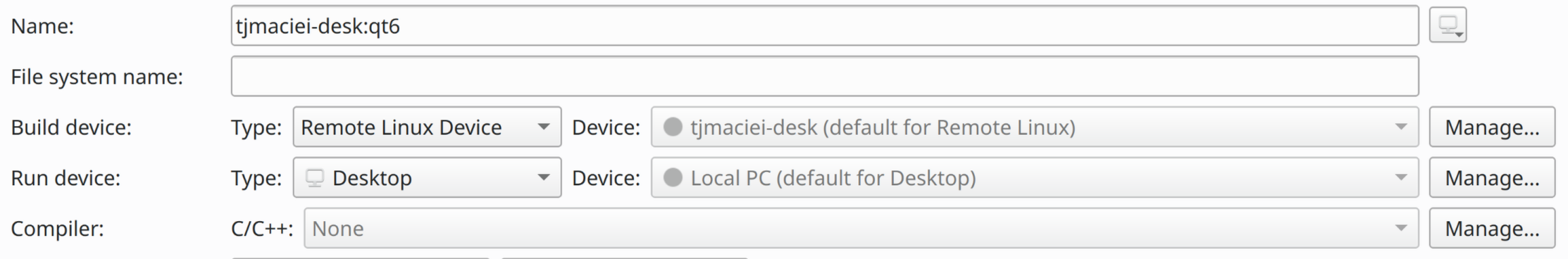 I'm trying to set up Qt Creator to compile remotely. I don't even know if this is possible: the UI suggests it is but I don't see how.