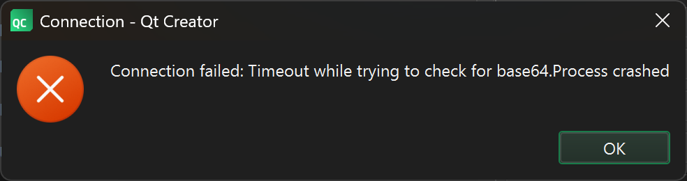 When starting Qt Creator, a message popup "Establishing a Connection" appears and reamins for a while. If I go to the device settings, and press "Test", an additional message box with that text appears and shortly after both disappear and the connection is established.