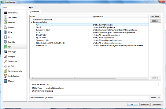 - Click onto the qmake path of some unselected Qt version.