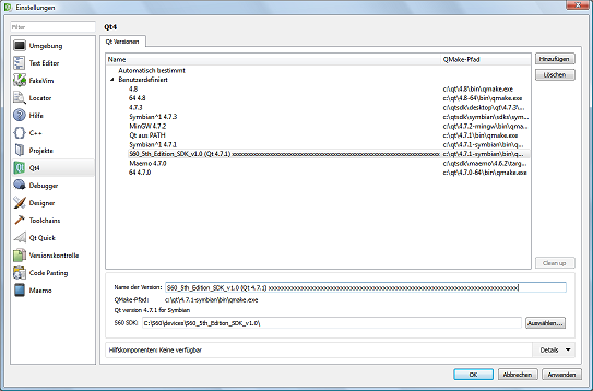 The name column will become wider and wider. Thus, the qmake paths don't fit the window anymore but there's no scrollbar to make them visible again: