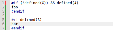 #if !defined(X) && defined(A) foo #endif #if defined(A) bar #endif