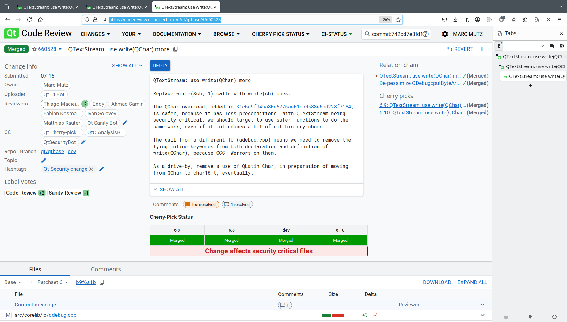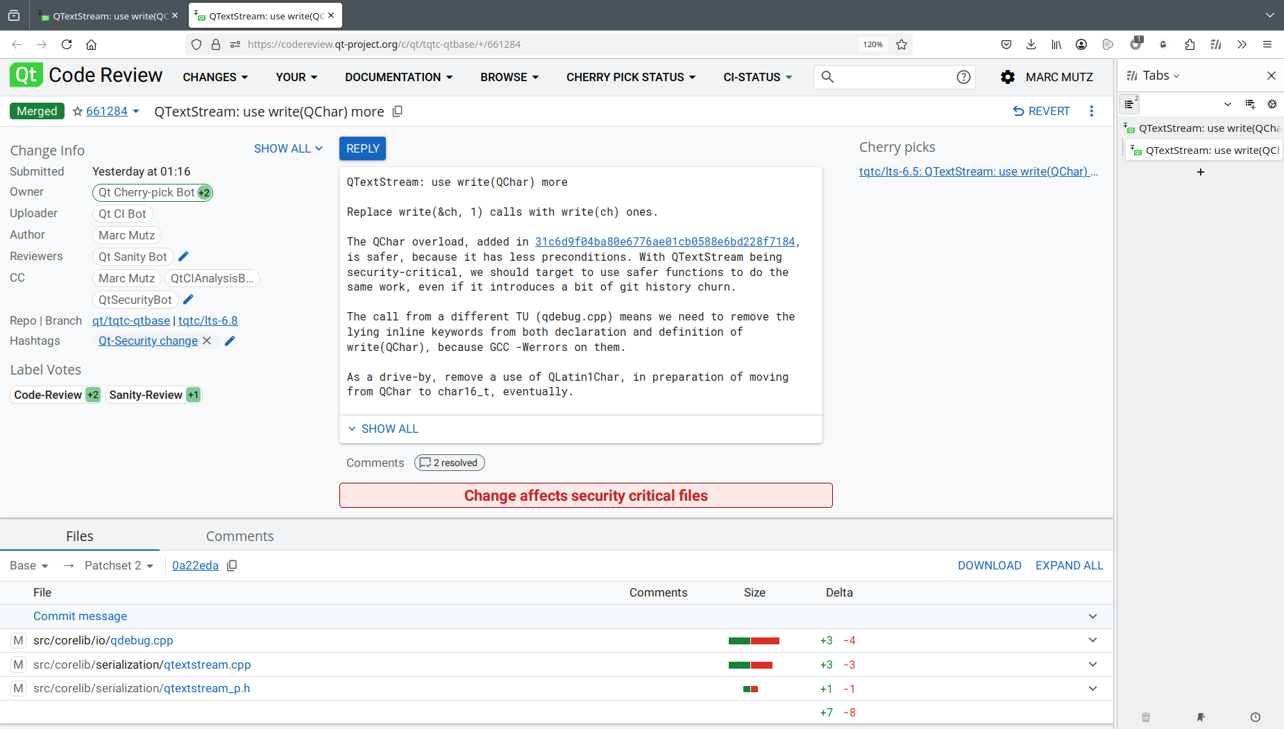 but it does not appear in the Cherry-Pick Status of https://codereview.qt-project.org/c/qt/qtbase/+/660528: