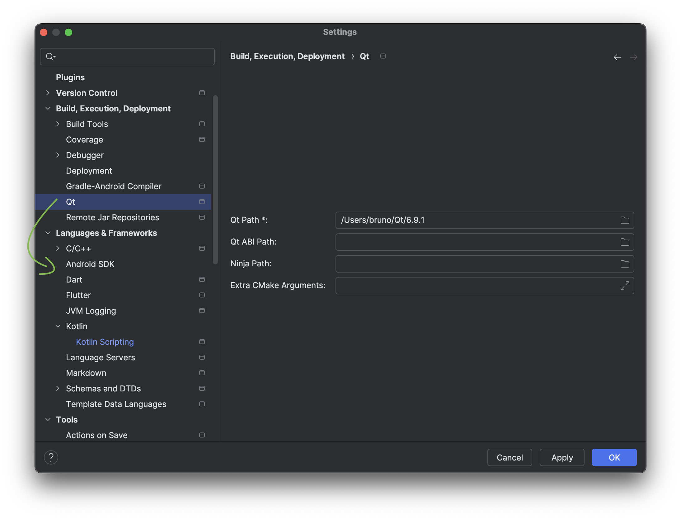 • As a user I expect to find Qt settings of TAS with other frameworks such as Kotlin, Flutter and Android SDK.