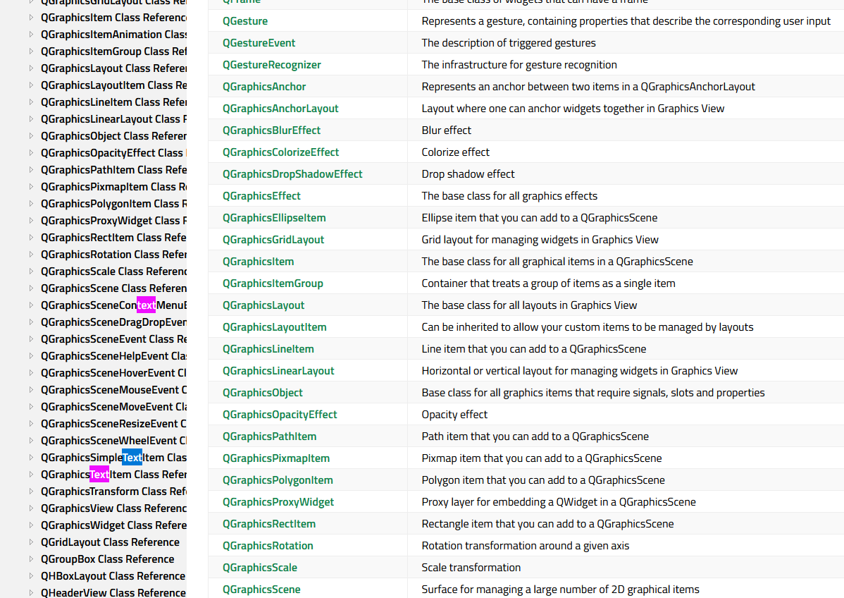 If I try to search for "text" on https://doc.qt.io/qt-6/qtwidgets-module.html, the sidebar is included in the results. This makes it a bit distracting when you're already on an overview page, as you're getting two sets of identical results: